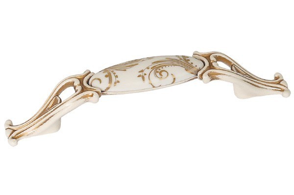 Ручка скоба M81.X01.G7.MT5G, материал Замак Керамика, отделка Золотая патина Золото Керамика Слоновая кость, 142*22*25 мм
